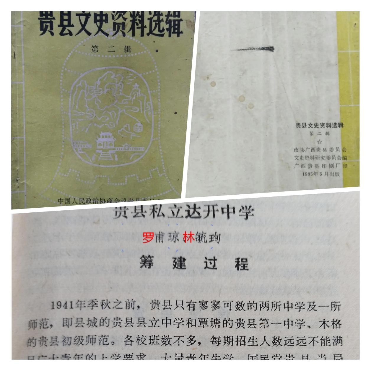 一是“林进才、林伯均、沈毓卿、朱守敬、”说:罗甫琼、林毓珣的《贵县私立达开中学》一文,是目前相关史料中最早、最详尽的一篇。文中说:1941年季秋前,贵县只有寥寥可数的两所中学及一所师范,且各校班数不多,招生人数远未满足广大青年需求。当时贵县城厢人林伯均见状,便撰文于《贵县日报》建议,以纪念先烈石达开为宗旨,创办贵县达开中学。