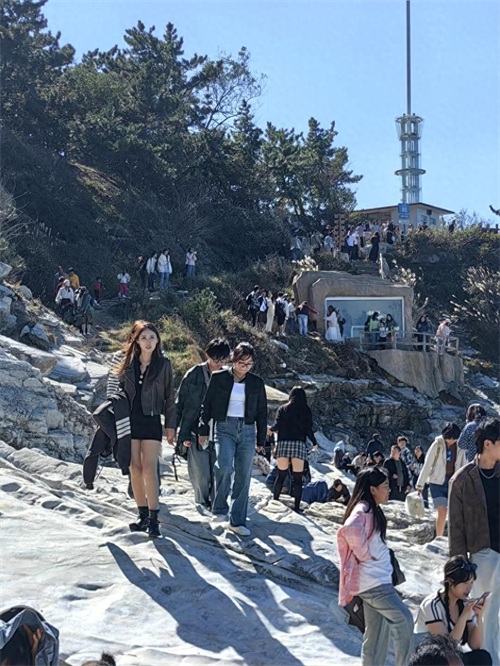 10月3日,国庆长假第三天,齐鲁壹点记者在山东烟台牟平高热的网红打卡点——养马岛采访目击,海岛旅游客流进入高峰运行,借助良好天气,假日旅游呈现出“井喷”之势。