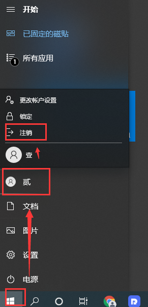 还有一个方法就是点击桌面开始菜单,点击用户、然后点击注销,注销到电脑当前登录的账户后,再点击关机就可以了。