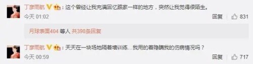 “天天在一块场地隔着墙训练,我用得着隐瞒我的伤病情况吗?这个曾经让我充满回忆跟家一样的地方,突然让我觉得很陌生。”丁彦雨航在自己动态下方的留言,更让整件事变得颇为尴尬。