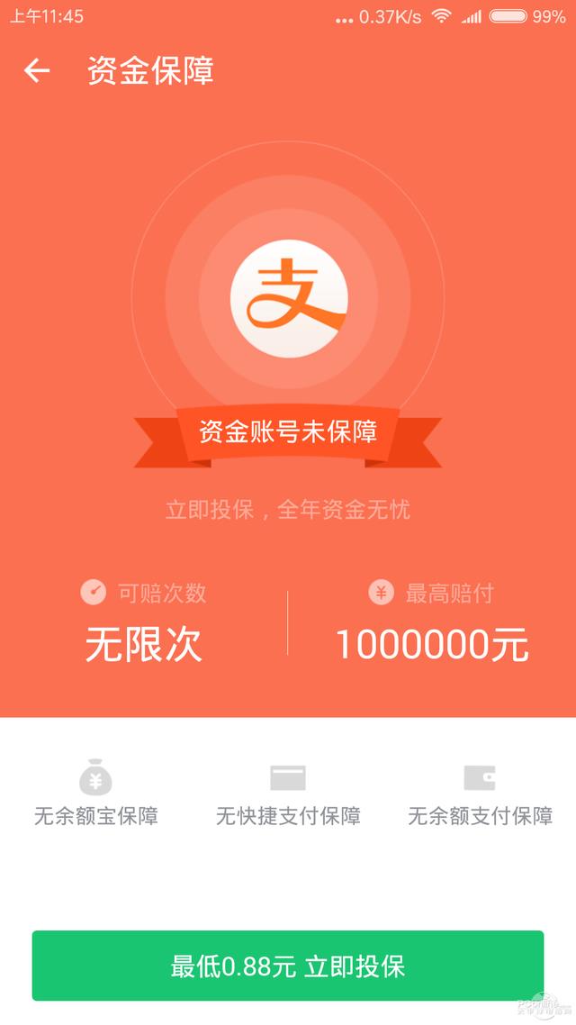 图13 钱盾守财计划 图14 支付宝账户安全险最低才0.88元