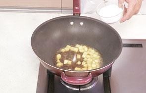 2 热锅注油烧热,倒入土豆,炒香。