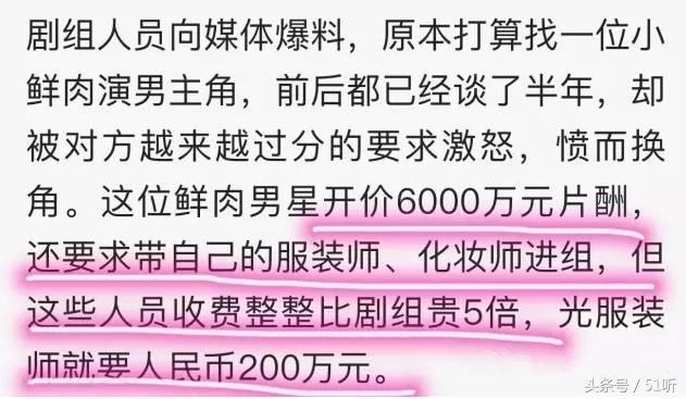 小鲜肉耍大牌,拍65天收6000万,还嫌台词不够时尚