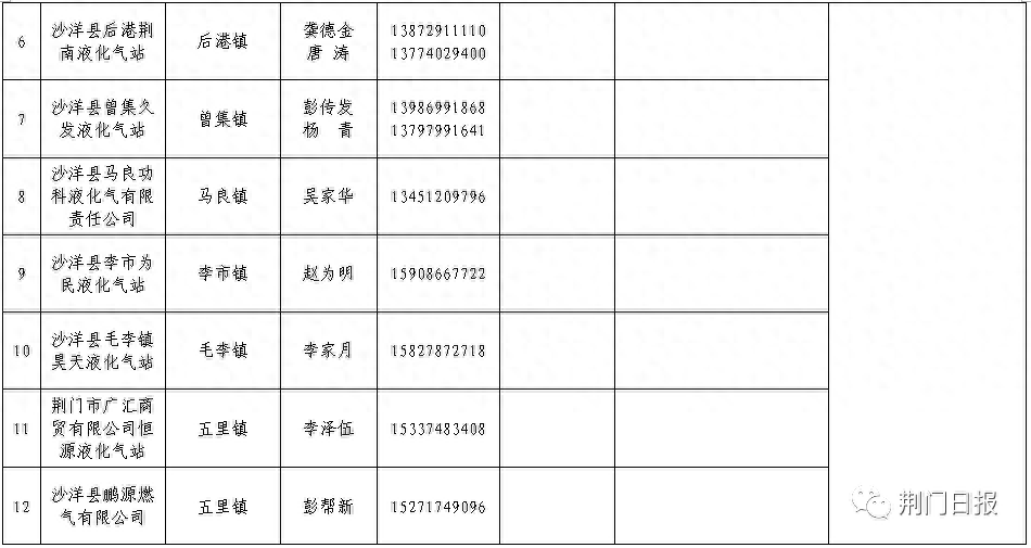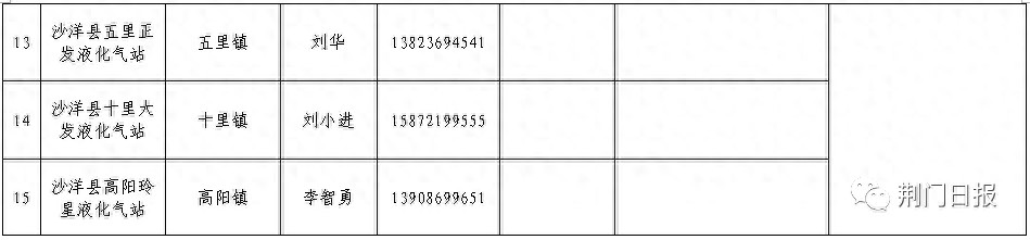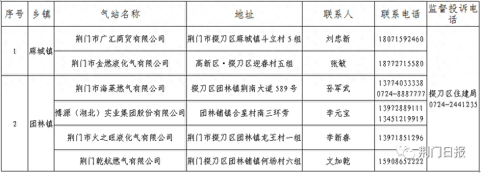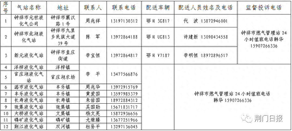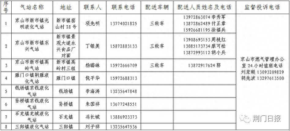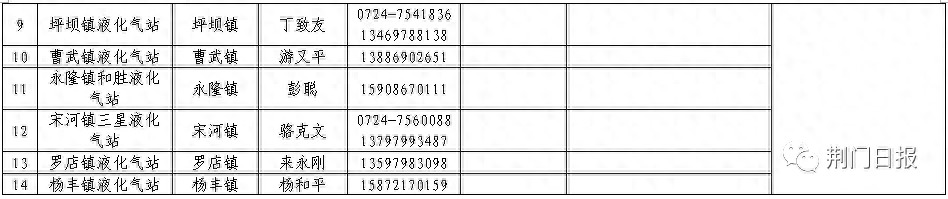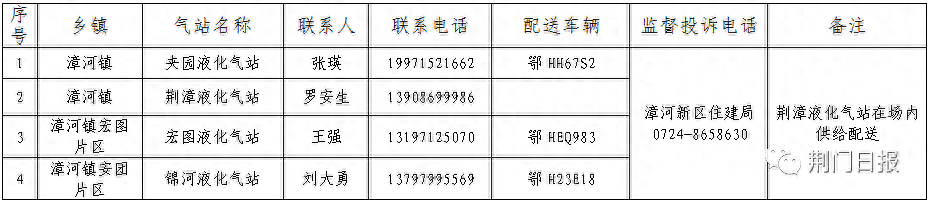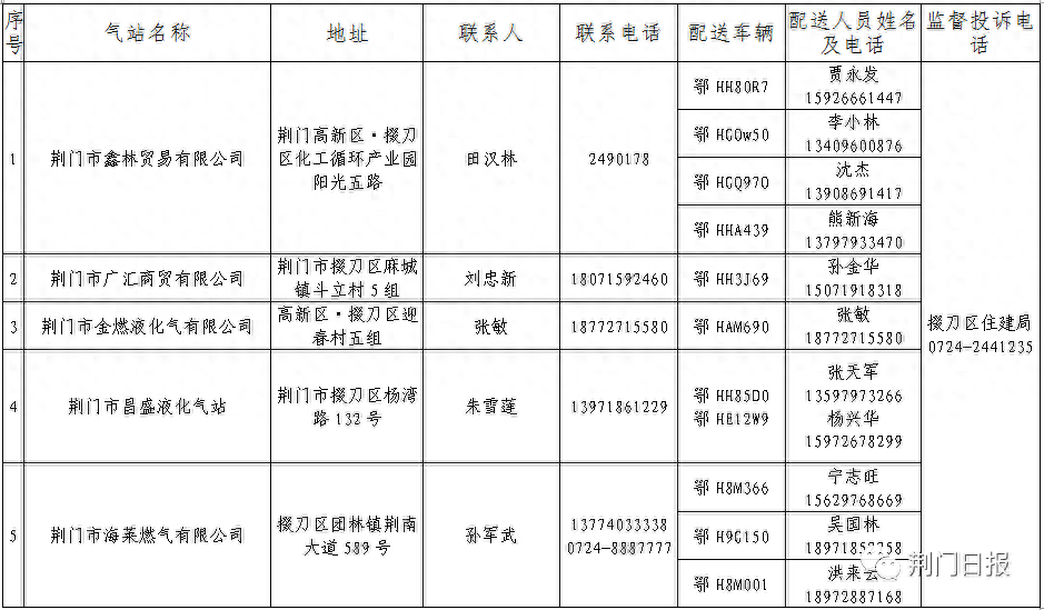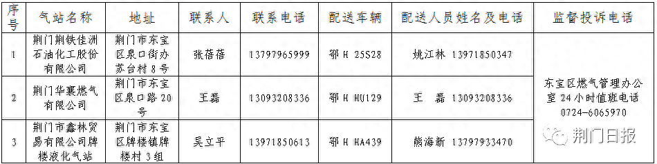 荆门市中心城区(东宝区)液化石油气保供企业名称及电话(点击查看大图)
