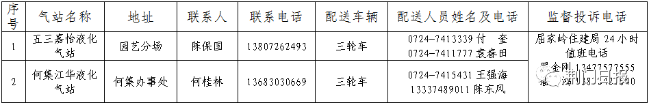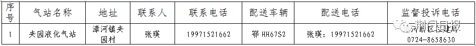 疫情防控期间,为解决我市非天然气用户液化气灌装问题,2月20日,市住建局统计汇总了全市液化石油气保供企业名单及配送电话,现公布如下。如市民需要灌气,可向所在社区(村委会)咨询配送电话,或直接跟液化气保供企业联系,实施送气上门服务。