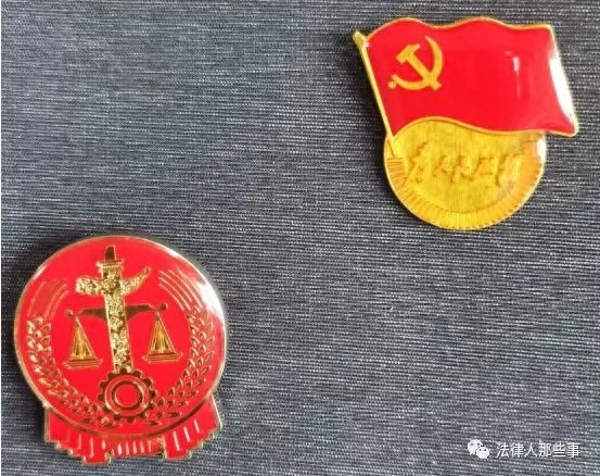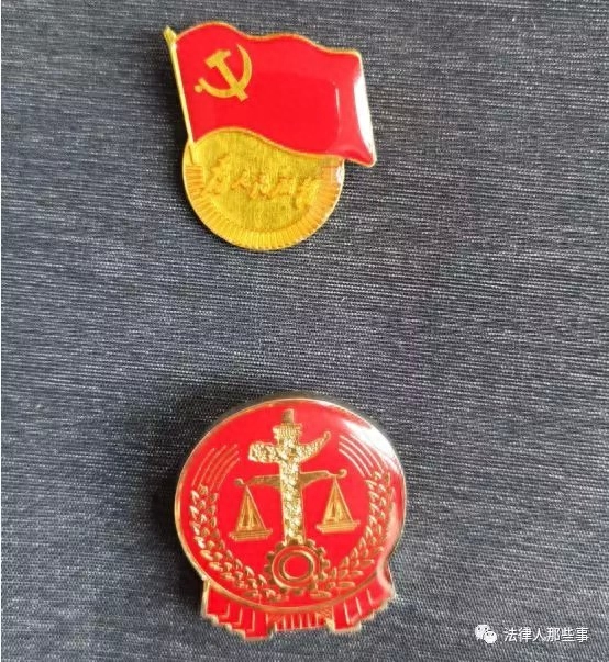 有党员徽章戴在法徽之上的