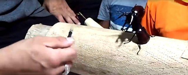 拥挤嘈杂的场地中,亢奋的人们挥舞着手中的投注单,目不转睛地盯着场上的甲虫,不时地用小棍敲打甲虫身下的原木,督促着它们更加激烈地搏斗。直到有一方跌落场地或者被KO,比赛才会告一段落,然后新的一轮对决马上就会开始。