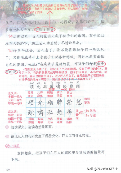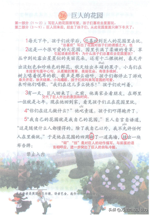 缕怎么读(四年级语文下册第26课《巨人的花园》课堂笔记+课后练习,收藏预习)