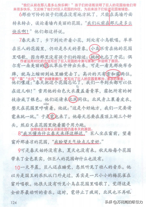 没有孩子的地方就没有春天。当巨人赶走孩子,砌起围墙,挂起布告牌的同时,也将春天拒之门外,将自己的心锁在了围墙里。他想独享花园里的一切,得到的却是寒冷和凄凉。