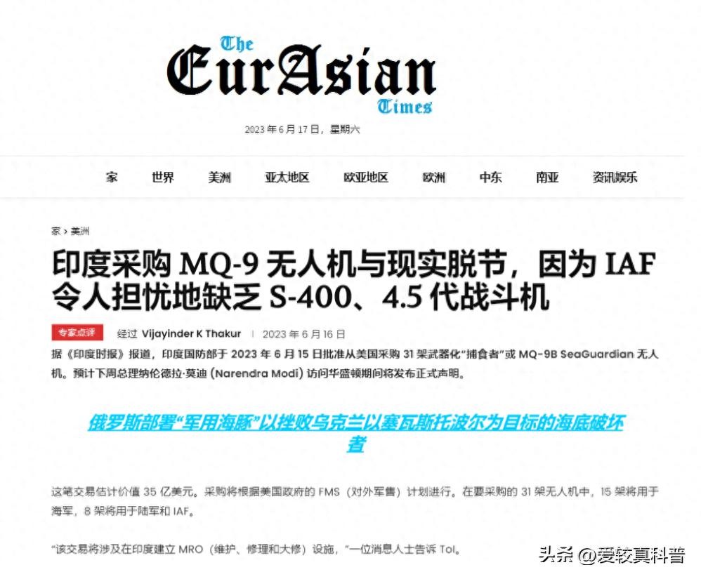 印度豪掷35亿美元,向美国订购了31台无人机,每台无人机的价格超过1亿美元!印度这一“土豪”行为,却引发了国内外的广泛质疑。