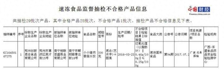 思念食品曾因质检不合格上黑榜