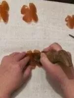 准备好蜡烛,把刻好的花瓣在火上烤一下,这时花瓣会变软,把花瓣往中间弯折一下,出来花瓣的弧度,把做好的花瓣粘贴在一起,花朵就做好了。