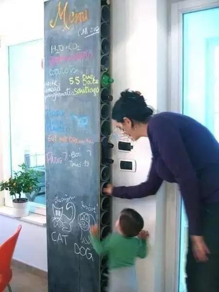 外面是黑板,用水管做成的夹层也可以放置东西哦。