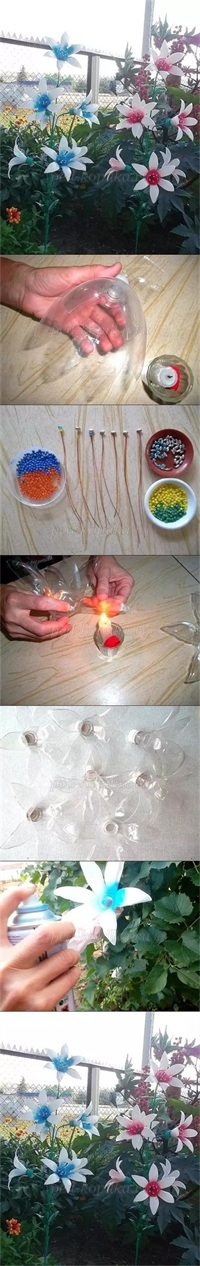 是不是很美,你也赶紧动手做一个吧。把塑料瓶利用起来,别傻傻地把它丢了,既环保又可以装饰环境何乐而不为呢。