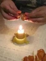 3:把裁剪好的花瓣靠近点燃的蜡烛,以便使花瓣产生卷曲的效果