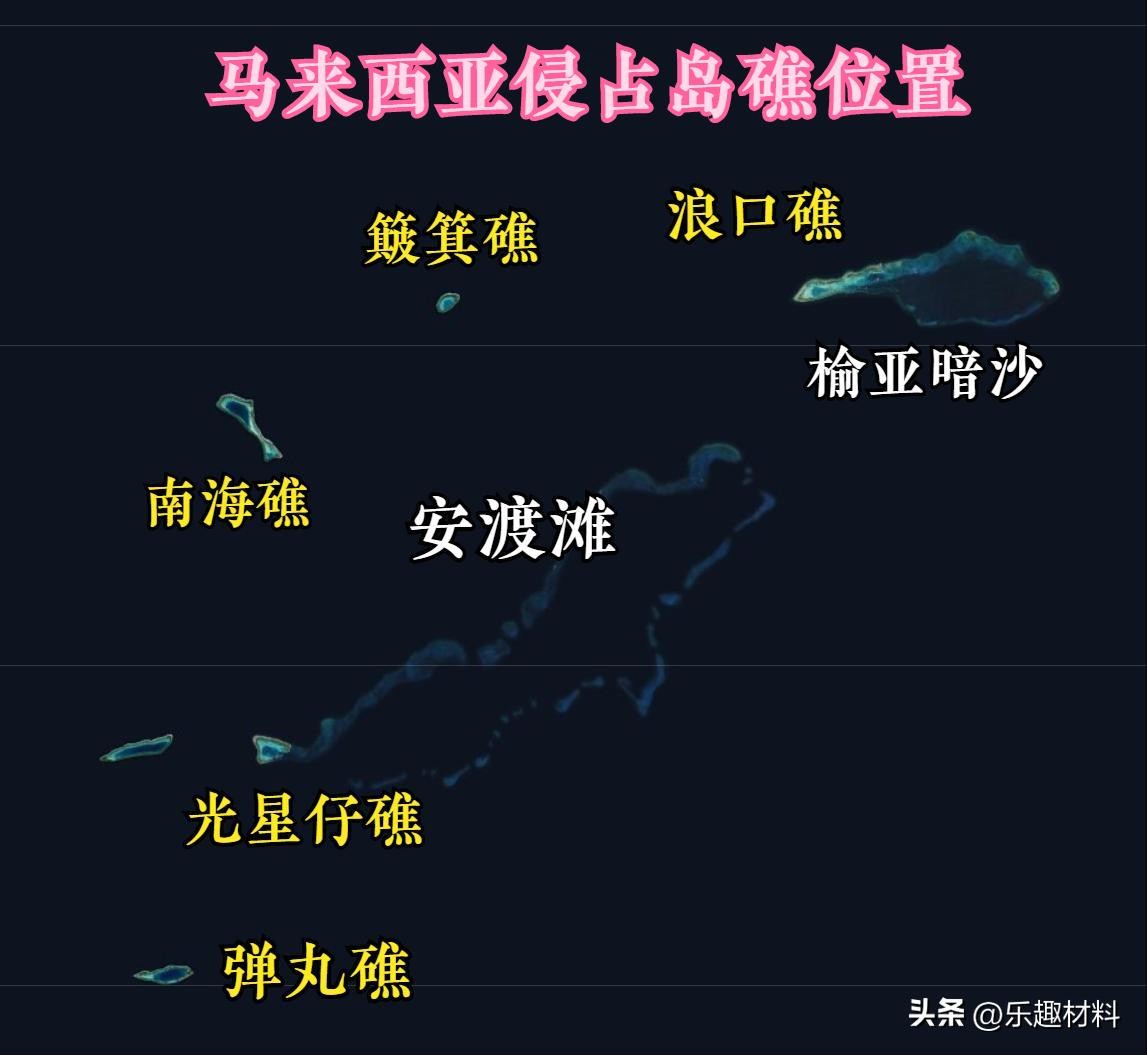 马来西亚对华相对友好,也侵占了中国南沙弹丸礁、光星仔礁、南海礁、簸箕礁和浪口礁,还在弹丸礁填海造陆0.35平方公里,建立了海军基地,花巨资建设豪华酒店,大力开发旅游业。