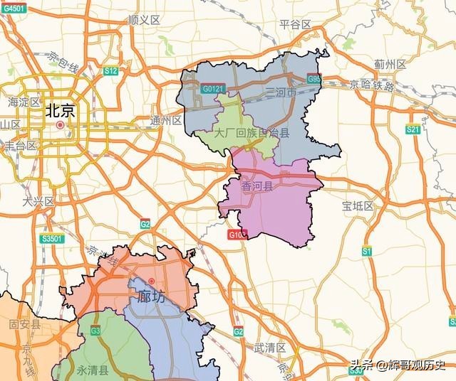 河北省廊坊市的“北三县”(三河市、大厂回族自治县、香河县)是中国占地面积最大、行政级别最高的县级飞地,它们在地理位置上被北京和天津包裹。