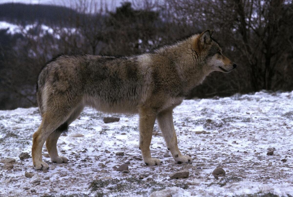 这只狼现在很饿了,恨不得枯木桩子都要啃一口。
