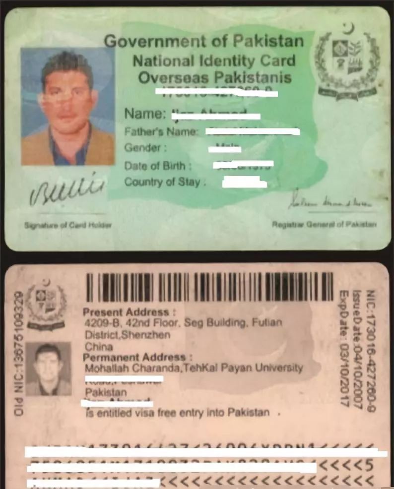 巴基斯坦的身份证,似乎是纸质的卡片。