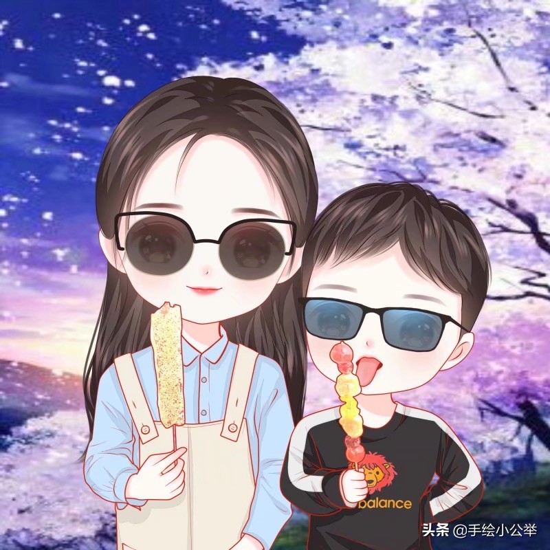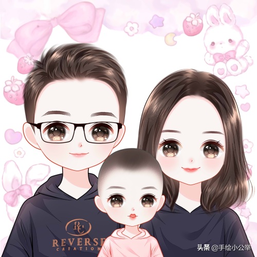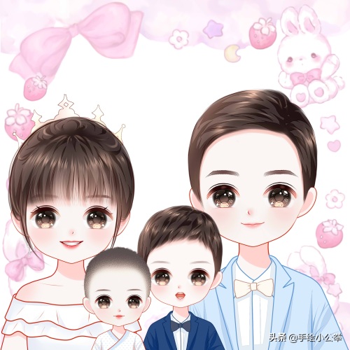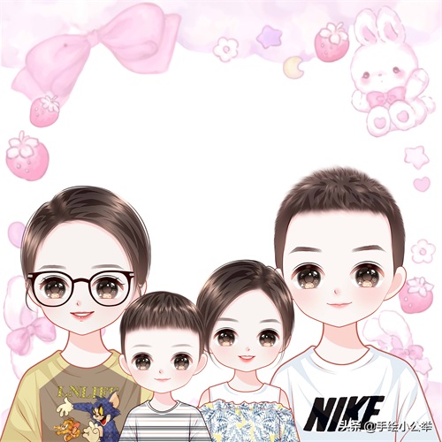 一家四口五口卡通真人手绘全家福,可爱呆萌,有趣有意思..