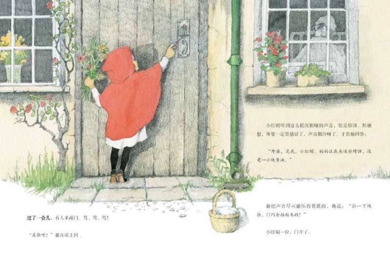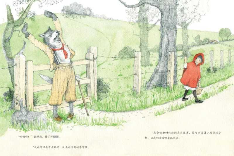 这本由天略引进的《小红帽》是另一个知名版本,出自夏尔·佩罗(也译成贝洛),它由比得兔的创作者、现代图画书的开创者波特小姐口述,英国童书插画家和作家海伦·奥克森伯里绘制插画。与格林兄弟的版本不同,它的结局比较暗黑。你一定想到了,结局就是小红帽和奶奶都进了狼的肚子。