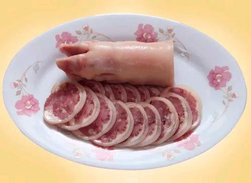 捆香蹄是徐州传统名菜之一,它不仅形美如玉、而且口感细腻,它是将选取的猪蹄去骨后,填入鲜肉,香菇等多种食材,然后用荷叶包裹,带有浓浓的香气,是送礼佳品之一。