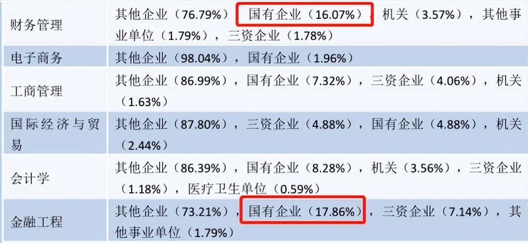 财务管理和金融工程等专业进入国企的数字相对也还算不错。