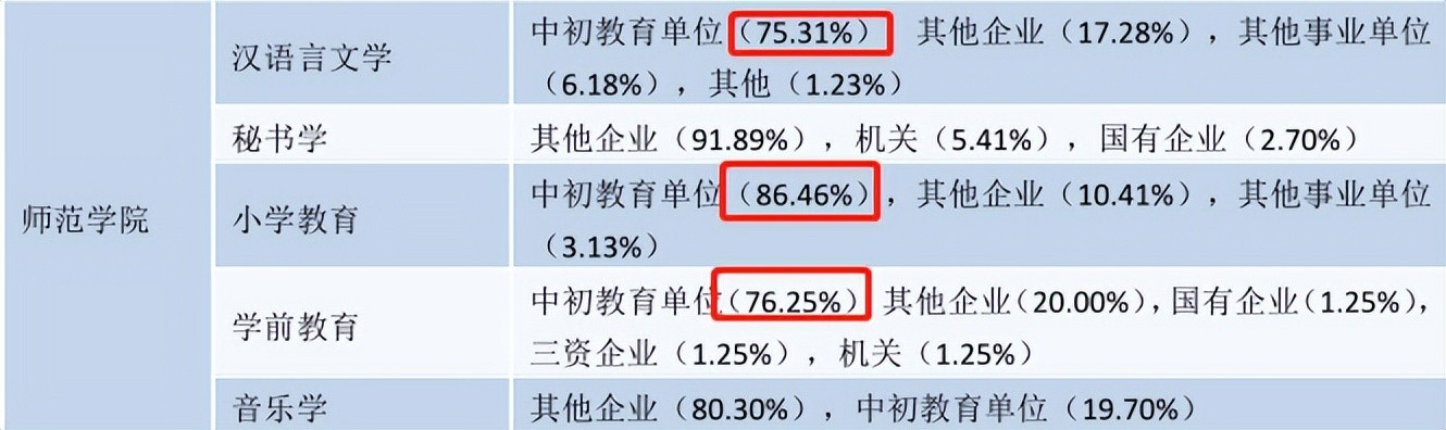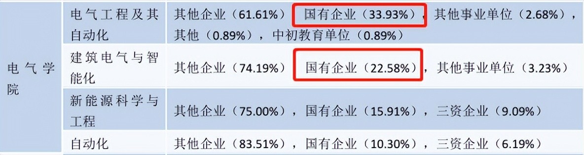 毕业生中电气工程及其自动化专业进入国企的比例达到了30.59%,师范学院进入中初教育单位的比例达到了60.56%,想要进入国企或者体制内的考生和家长可以查看就业质量报告再进行选择。