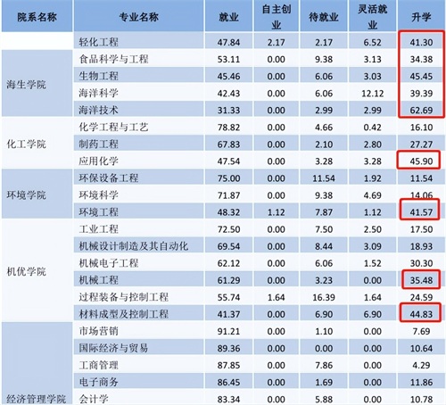 材料,交通,电气,生物,轻化工程,海洋科学,海洋技术,化学,环境,能源,机械等专业的升学率相对高一些。