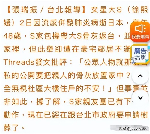 先有S妈扬言上战场,再有小S发文确定树葬。
