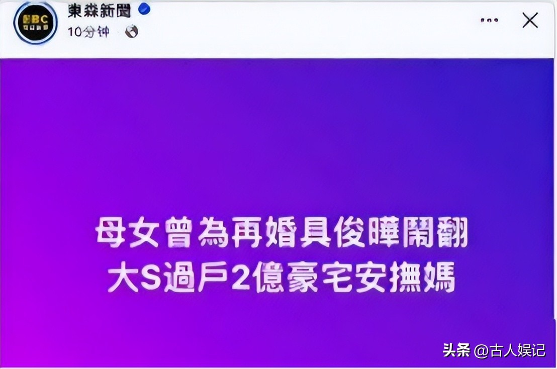 果然之后大S过户给了一套房产给S妈,才得以松口。