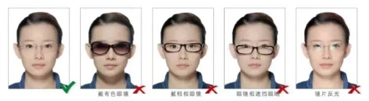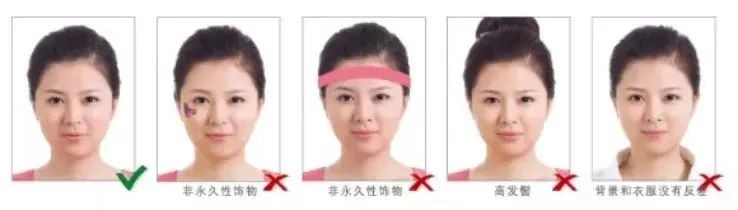 衣着:宜着深色有领服装(衬衫、圆领、小V领等,领口不得过大),不得穿着制式服装(如工作服、警服、学生服),不戴帽子、头巾、耳环项链等饰品;非永久性饰物不得遮挡脸部;