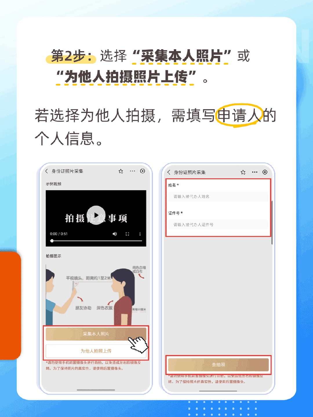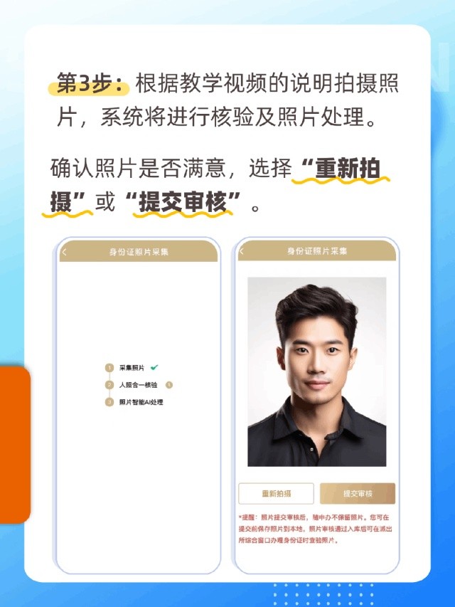 ➤ 提醒:居民身份证照片有严格要求,如审核不通过可按照提示再次拍摄哦!