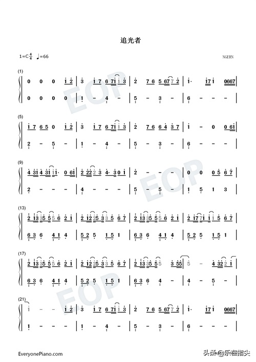 追光者-C调简单版-简谱五线谱钢琴谱电子琴谱