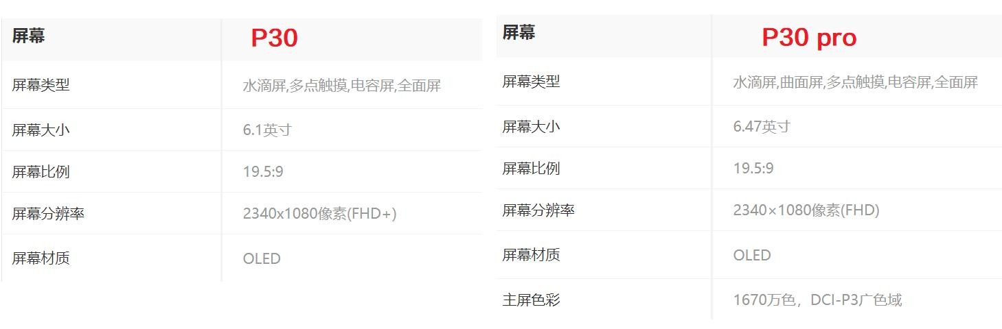 2、屏幕方面,P30采用的是6.1英寸的OLED,而P30 pro采用的是6.47英寸的OLED屏幕。