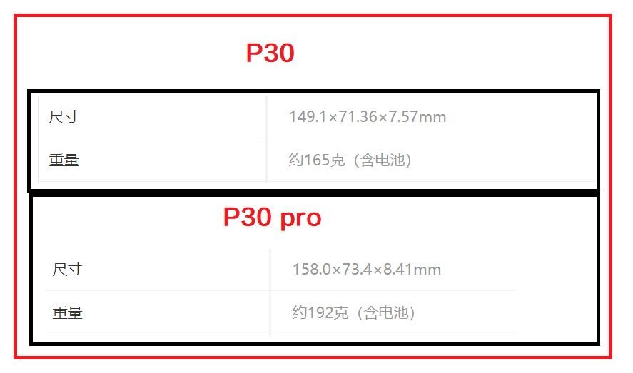 1、重量方面,华为P30为165g,P30 pro则为192g。