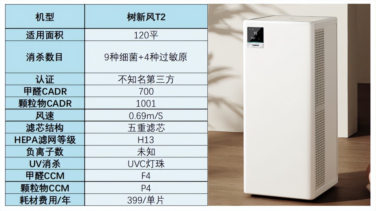 性能测评:树新风空气净化器HEPA滤网等级为H13级,但在实际测评中发现产品的净化效率较低,因而无法较快速进行室内空气质量的提升,建议对电机风轮设计进行优化,以避免长时间在空气质量低的环境内出现头晕、恶心等身体不适症状。