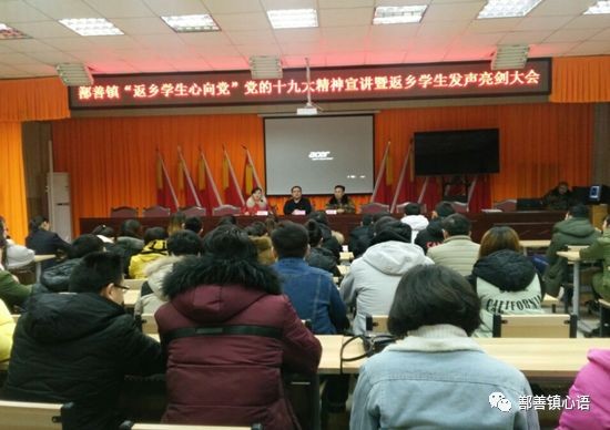 为进一步深入宣传党的十九大重要精神,强化连木沁镇返乡学生寒假期间教育管理工作,引导返乡学生树立正确的政治思想观念,感恩祖国、听党话跟党走。搭建返乡学生交流思想、交流经验的互动平台,倾听学生心声,营造良好的社会风气并强化对家乡的认同感。连木沁镇团委于1月28日组织返乡学生开展了座谈会暨发声亮剑活动,200余名返乡学生参加了此次活动。