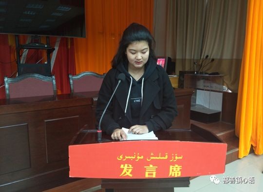 随后,返乡学生代表进行了发声亮剑,为在场的各位同学介绍了在求学中享受到党和政府的各项政策帮扶,讲述了学习中的一些感触,谈他在内地求学的所见所闻,描述了亲眼所见的家乡巨大变化,严厉谴责了宗教极端势力的种种暴行,并表达自己坚决同分裂国家、破坏新疆团结稳定的极端势力斗争的决心。最后他还表示,如果没有党和政府的好政策,自己也无法到梦寐以求的大学校园学习,今后会继续刻苦学习,毕业后回到美丽的新疆,为家乡的经济发展贡献自己的力量。