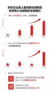 2019 年第二季度,京东集团在美国通用会计准则下(GAAP)与非美国通用会计准则下(Non-GAAP)归属于普通股股东的净利润均实现盈利,其中非美国通用会计准则下(Non-GAAP)归属于普通股股东的净利润为 36 亿元人民币(约 5 亿美元),同比增长 644%,再创历史新高。