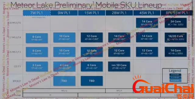 另外,根据之前的消息,Meteor Lake将会有非常丰富的产品线,包括超低功耗的7W型号,采用1P+4E/1P+8E的组合;9W型号,采用2P+4E/2P+8E的组合;15W型号,2P+4E/2P+8E/4P+8E组合;28W型号,2P+8E/4P+8E/6P+8E组合;45W型号则有4P+8E/6P+8E的组合。