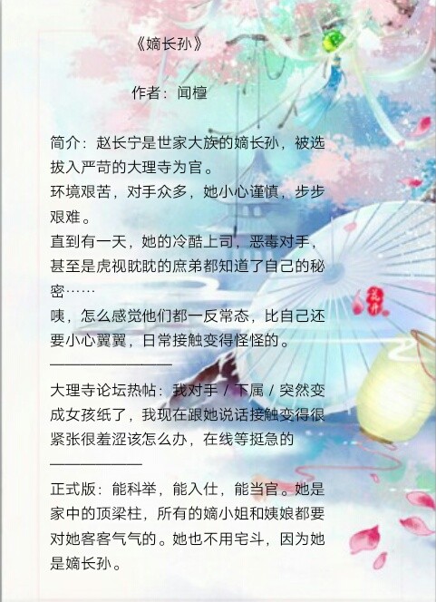 像《女世子》“女扮男装”的he甜宠文~《嫡长孙》《丞相不敢当》