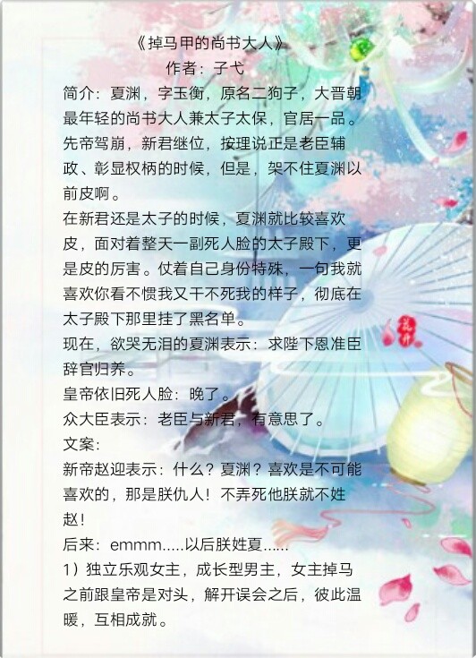总结:这些女主都很勇敢,有理想,有抱负,有才华。心怀天下,也勇于追求自己的人生,幸福~真的很喜欢这类的女主,这样的女生一定要幸福啊!