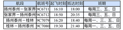 扬州泰州国际机场新航季航班时刻表出炉,开通桂林张家界旅游航线