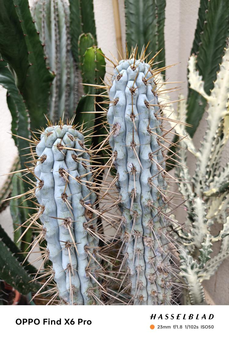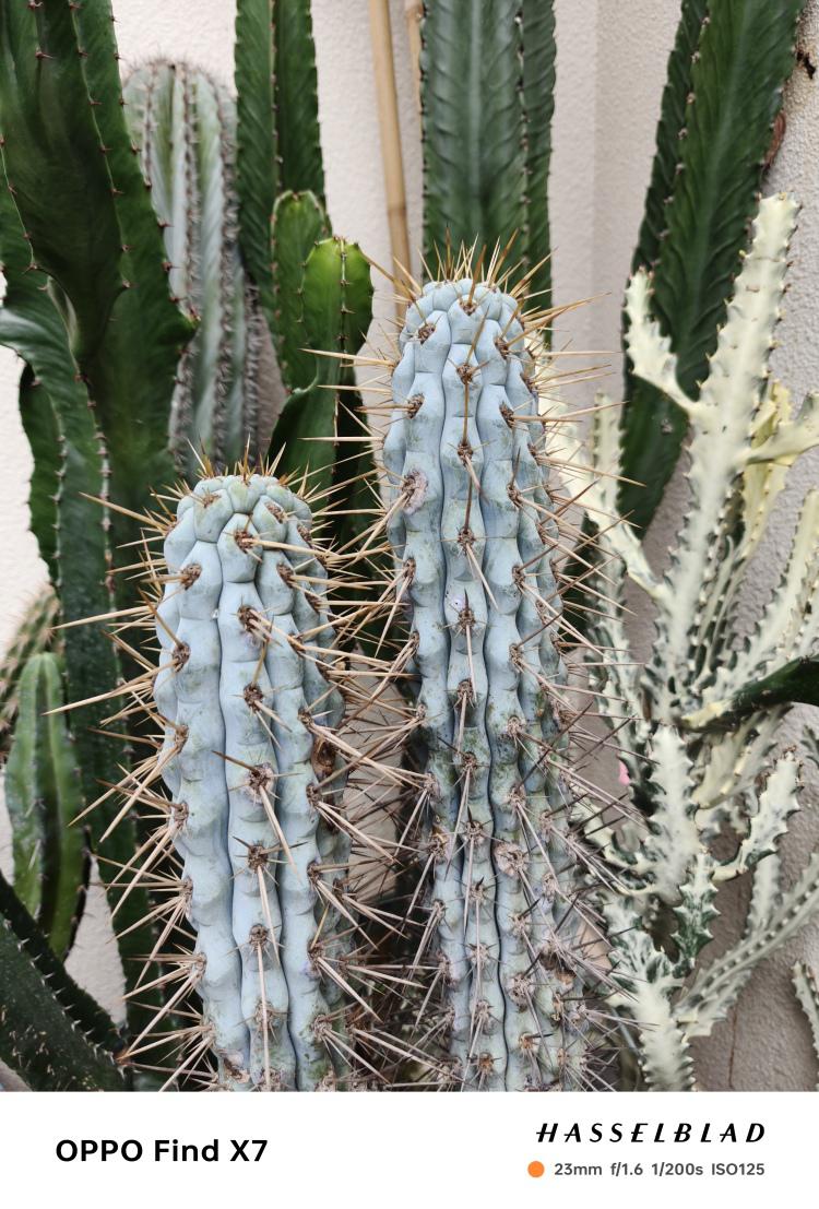 这组仙人掌的照片中,我们能够明显的看到 Find X7 在主体的细节和色彩表现上优于 Find X6 Pro,画面右侧那根浅色的仙人掌在 Find X6 Pro 上与后面的其他深绿色虚化程度相同,而 Find X7 让其很明显的处于中景的位置,和后面的其他仙人掌形成递进关系,前景、中景、远景层次分明,观感更好。