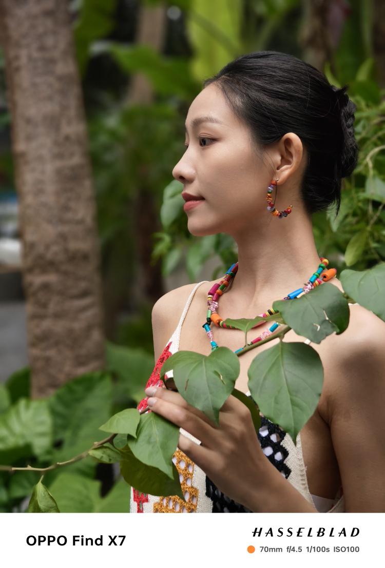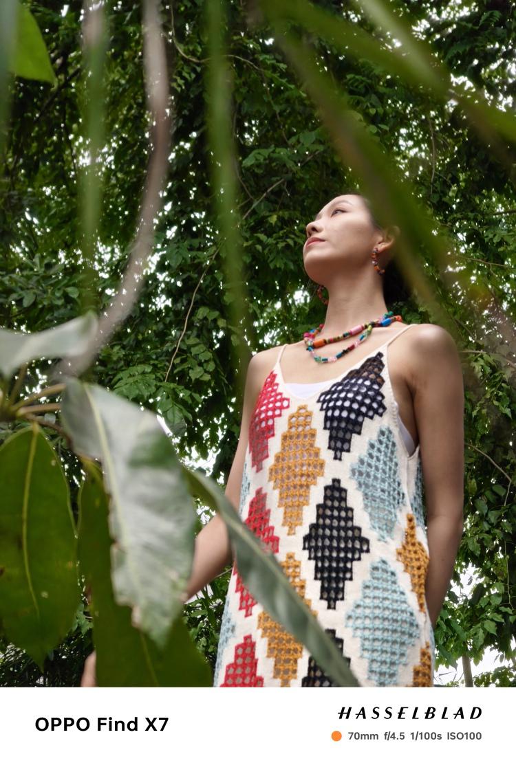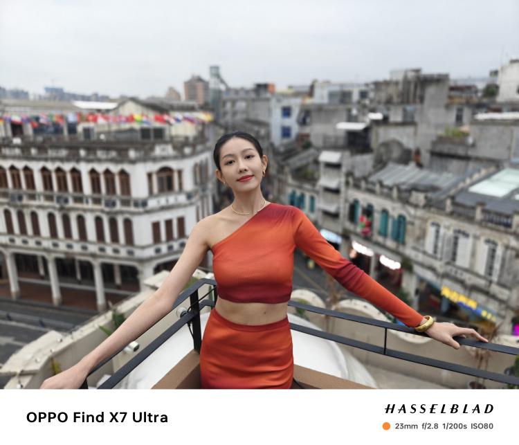 两张照片一张为近距离半身特写,另一张是有前景遮挡的远景。第一张更加注重画质的体现,模特发丝的边缘过渡非常自然,背景树影的光斑效果也非常接近光学镜头拍摄出来的效果。而第二张可以展现出 Find X7 在树叶较多的环境下分区计算的能力,并没有出现不应该出现的过度锐化、边缘画质紫边的现象。这些效果统统都不需要用户进行手动调整,你只需要按下快门,剩下的交给 OPPO。