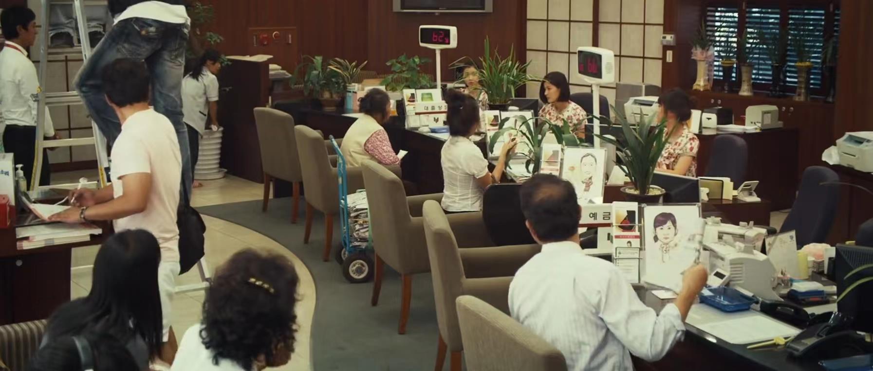 在工作上,头发花白的老奶奶来到银行里咨询租房贷款的事情,海媛冷漠地告诉她条件不符,不能办理。老奶奶非常无助。一直在向海媛表明原先的咨询说是可以办理的。但海媛语言尽是冰冷和不耐烦,甚至是愤怒。
