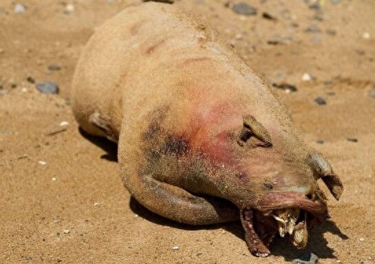 蒙托克怪兽是在美国纽约蒙托克发现的,浑身没有毛发,光滑皮肤略微发紫,疑似死前被殴打过。最可怕的是蒙托克怪兽长着一张鹰嘴,牙齿也非常的锋利,这个长得四不像的怪物被人怀疑是外星人遗留下的生物。