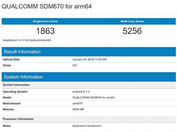 【机锋资讯】就在上周,有网友发现在Geekbench网站上出现了疑似高通骁龙670处理器的跑分数据,从跑分情况来看,骁龙670 处理器应该从骁龙660手中接过接力棒,继续制霸中高端处理器的位置。