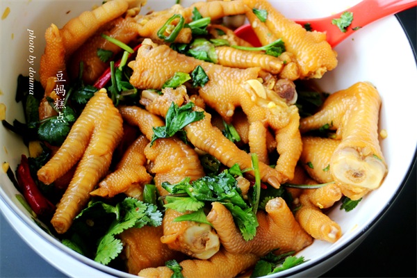 浸过凉水的鸡爪,可去除表面的胶质,吃起来更加清爽。